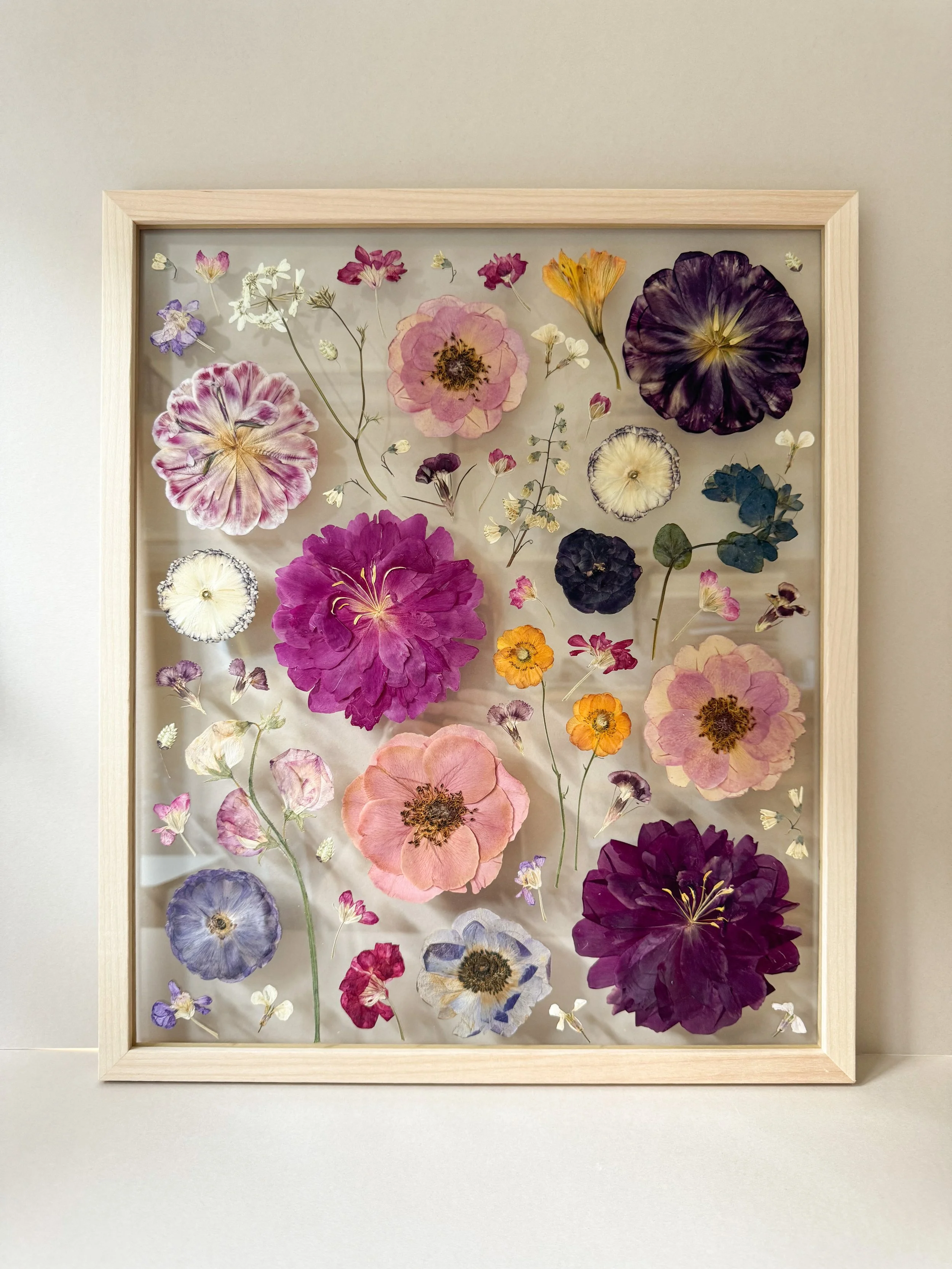 Flower pressing is a slow, delicate process. Each bouquet is carefully pressed to capture the beauty of every bloom, and the entire process takes several months to ensure quality and attention to detail.